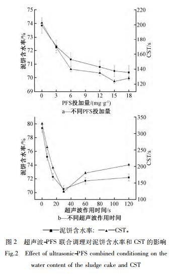 2. 2 超聲波-PFS 聯合調理對污泥脫水性能的影響